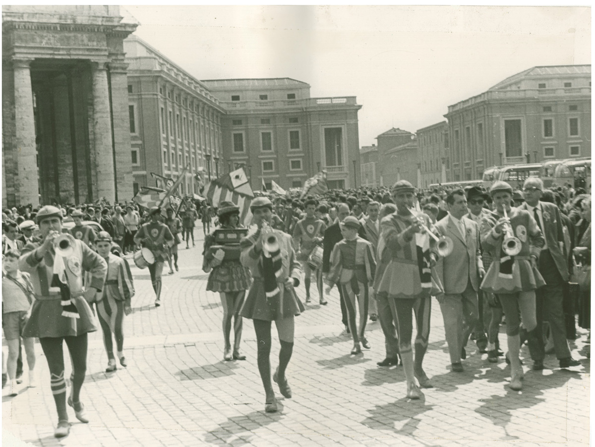 Nel 1969, a dieci anni dall’udienza papale, la Contrada torna in pellegrinaggio a Roma per depositare una corona di fiori sulla tomba di Giovanni XXIII.