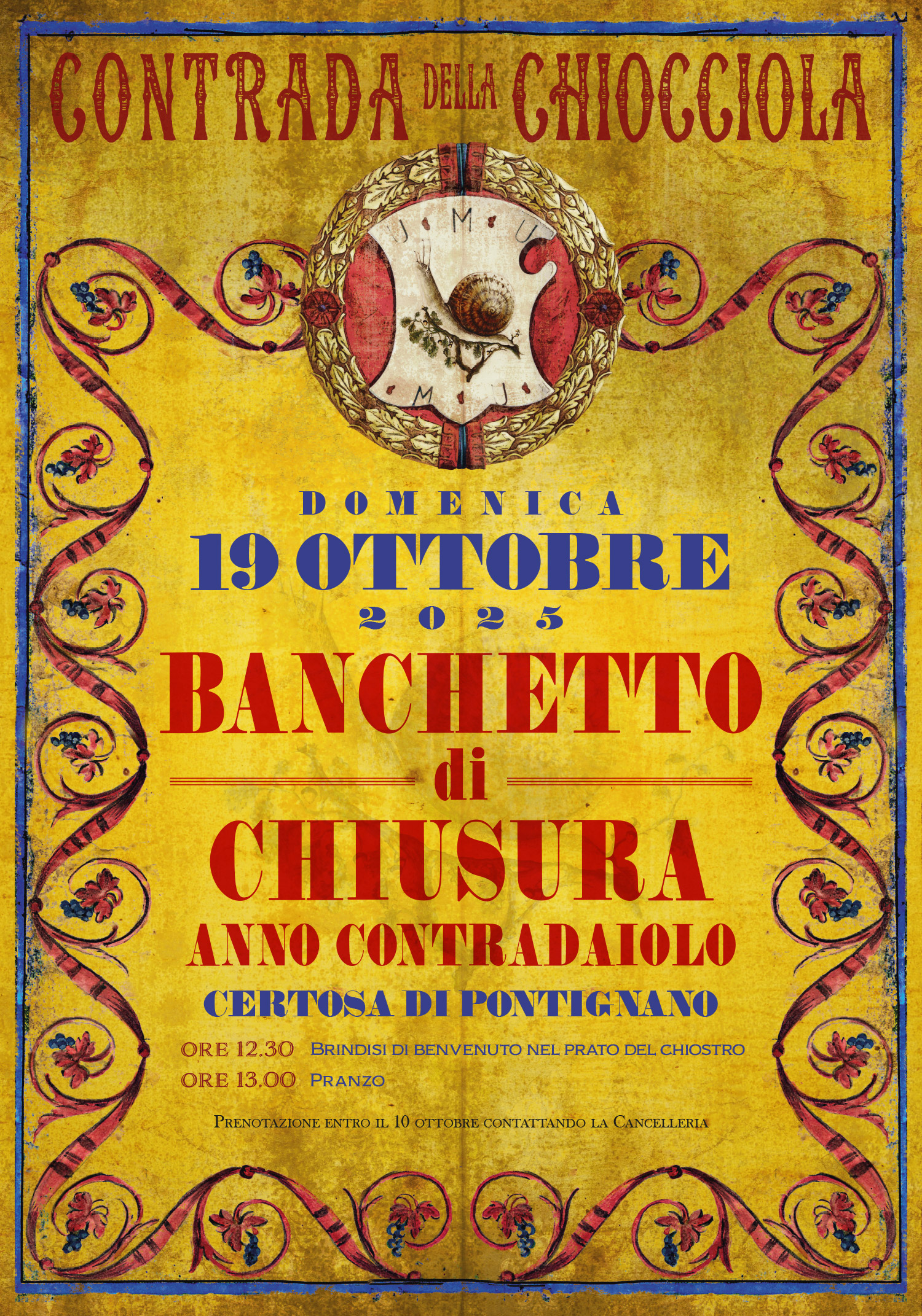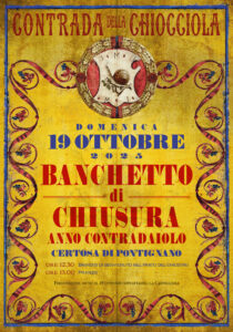 Domenica 19 ottobre p.v. presso il ristorante La Certosa di Pontignano verrà effettuato il Banchetto di Chiusura dell’Anno Contradaiolo: